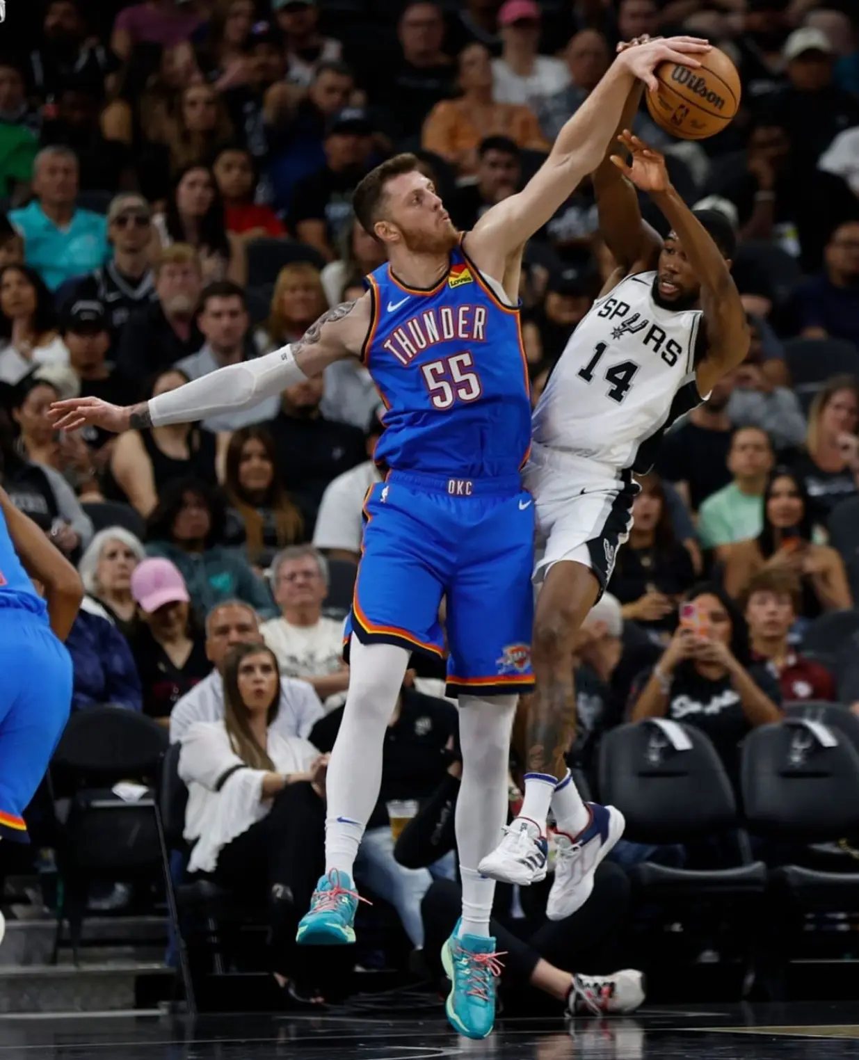 有人说他得分太少。但场均只有6.3次出手,你还想让他做什么?他来雷霆就是抢篮板和防守的,得分只是附加品。场均3.2个前场板,等于每场白送球队三次进攻机会。效率值跟杰伦·威廉姆斯几乎持平,这笔账怎么算都不亏。
